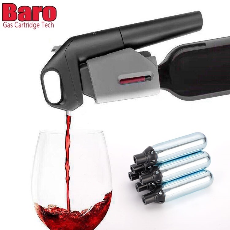 6,6 g argonpatronene for vinkonservering er produsert for å oppfylle de høyeste og strengeste internasjonale standarder for å sikre konsistent kvalitet, sikkerhet, ytelse og miljømessig ansvarlig praksis. Før sluttkontroll blir hver beholder nøye rengjort, fylt, elektronisk veid og testet for lekkasjer. Baro Export Wholesale de beste 6,5 g argontankene som er kompatible med vinkonserveringssystemer - Bytt ut argontanker med svarte forseglingshetter for å støtte OEM-sylinderutseende og emballasje!